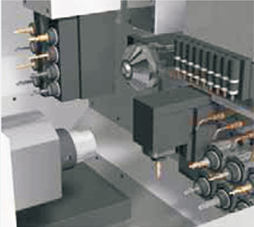 * TLX-300/500/800系列采用BMT-45-16T伺服動(dòng)力刀塔,刀塔可以安裝16把不同刀具。